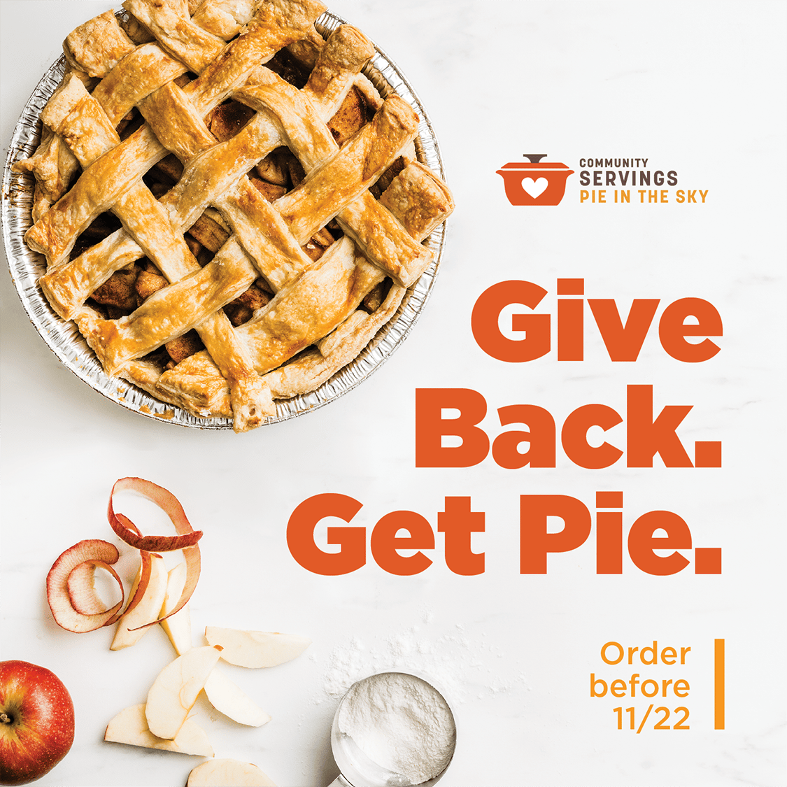 For every pie purchased — apple 🍎, pecan 🥜, or pumpkin 🎃 — Community Servings provides a full week of meals for a neighbor in need.